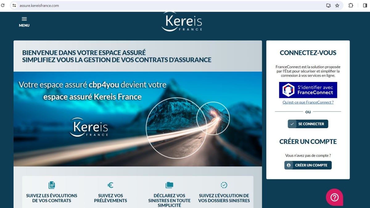 Après vérification, accès et gestion de base de l’Espace assuré Kereis France