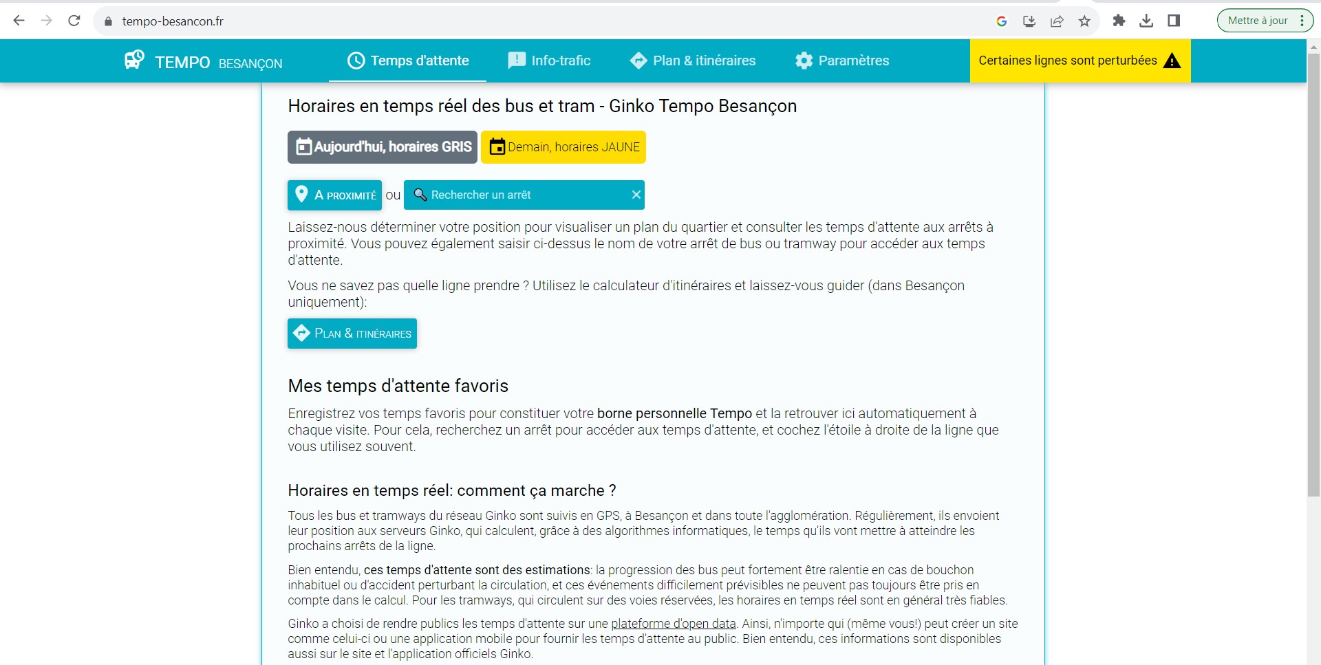 Source : AutoursDesVoyages, « Ginko Tempo, les horaires de transports en temps réel de Besançon », AutoursDesVoyages ; Communauté d’Agglomération du Grand Besançon, « Tempo – Horaires en temps réel », tempo-besancon.fr.