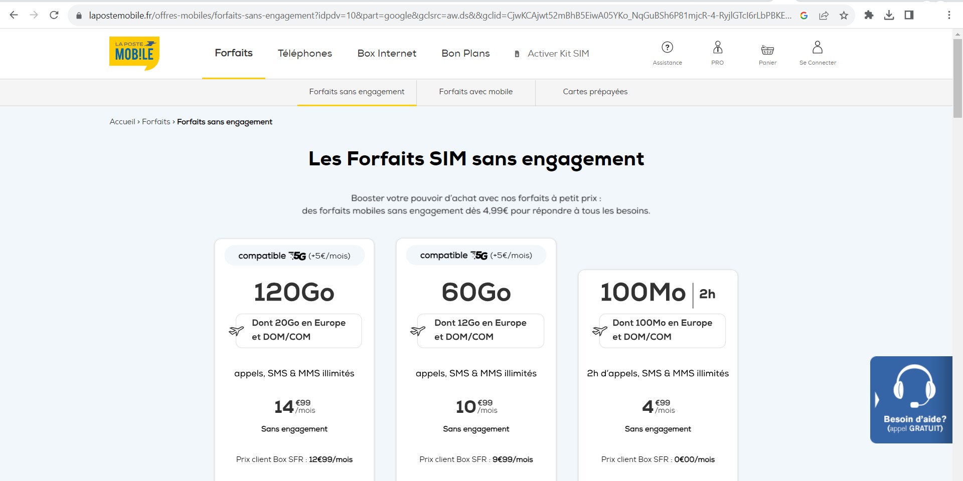 Comparatif des Forfaits SIM et Forfait + Mobile